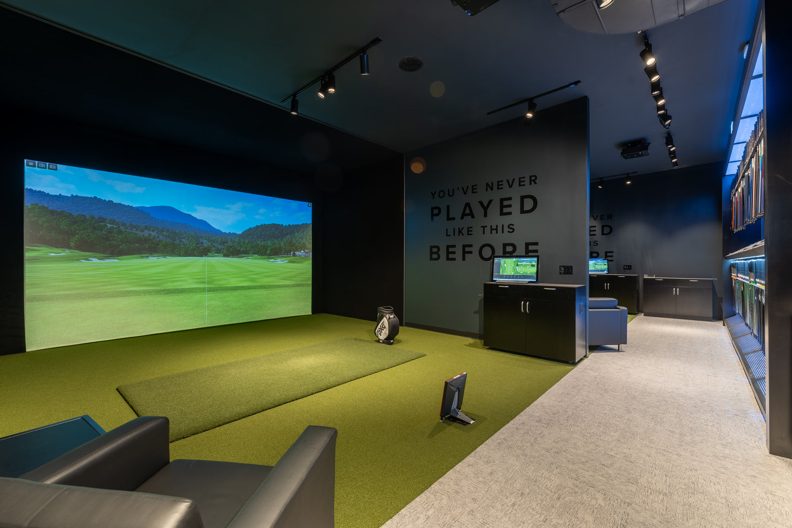 - Each private, climate-controlled fitting bay is equipped with a virtual golf simulator and top-of-the-line TrackMan™ launch monitor to evaluate your swing data with superior accuracy.