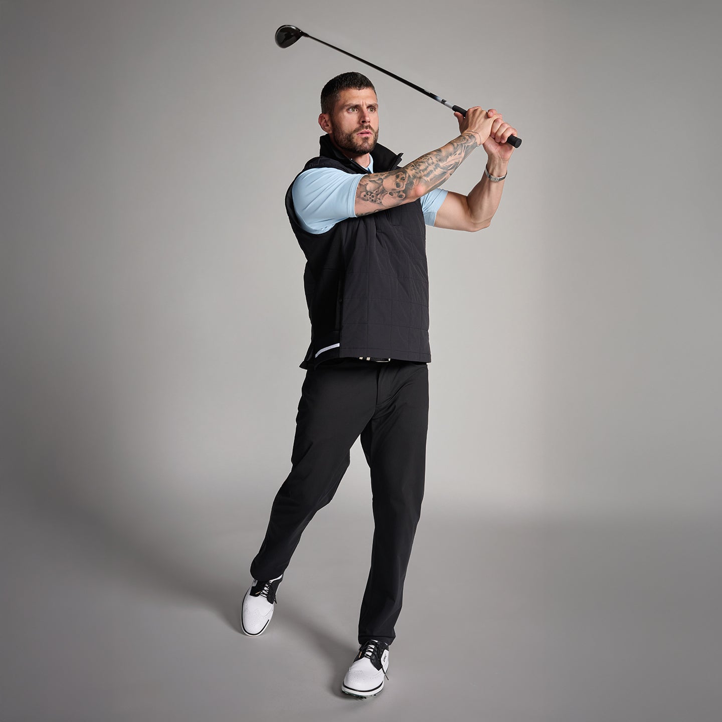 No fall golf outing is complete without our ½ Zip Quilted Vest. It's perfect for fall, featuring a square quilted design for lightweight warmth and polished style. The inner lining provides additional comfort while ribbed side panels and side vents with snaps enhance your range of motion. The double layer mock neck will keep you warm on chilly days. Layer yours over a long-sleeve polo or sweater and be ready for any forecast.