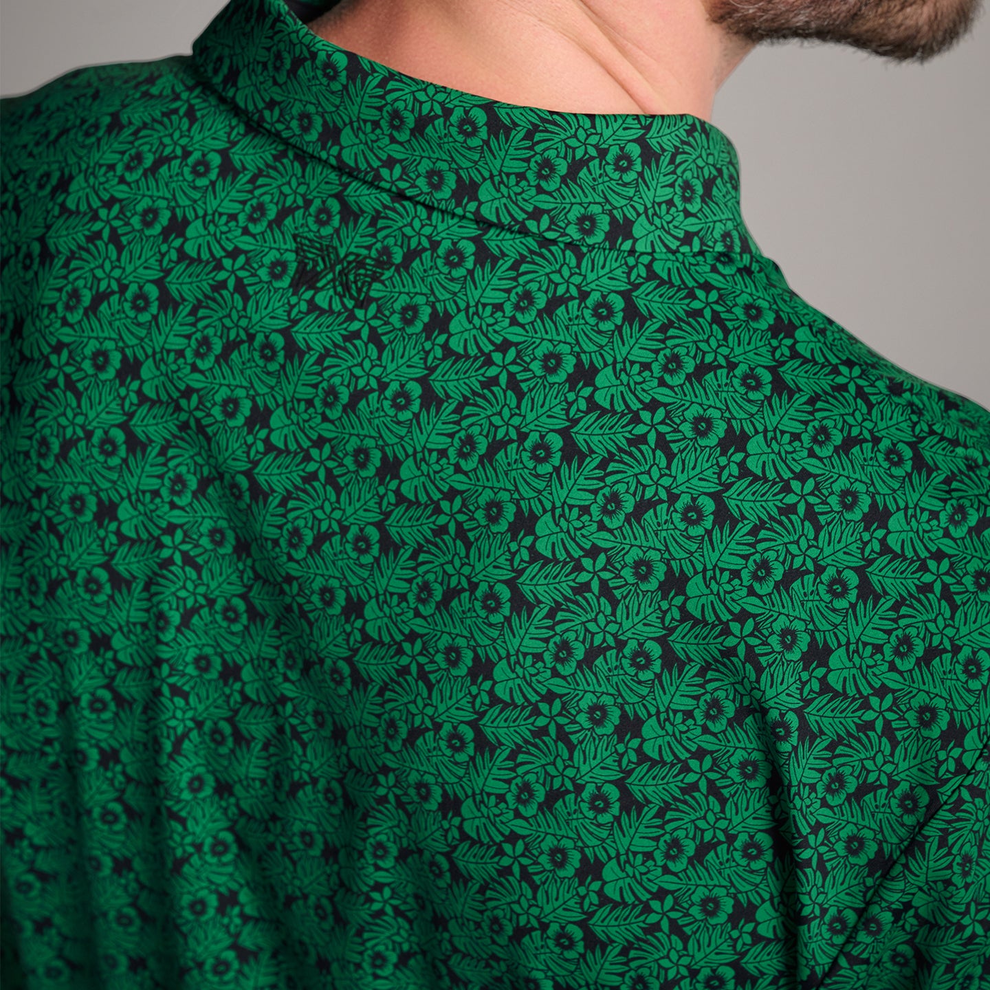 It’s always tiki time in our Comfort Fit Short Sleeve Aloha ‘26 Polos available in black and white. Patterned in our custom green tropical Aloha print with hand-drawn Hawaiian flowers and leaves, it’s rendered in a quick-dry, moisture-wicking material with UPF 50+ sun protection. The signature snap button placket and side vents feature logo tape detailing for a subtle PXG touch.