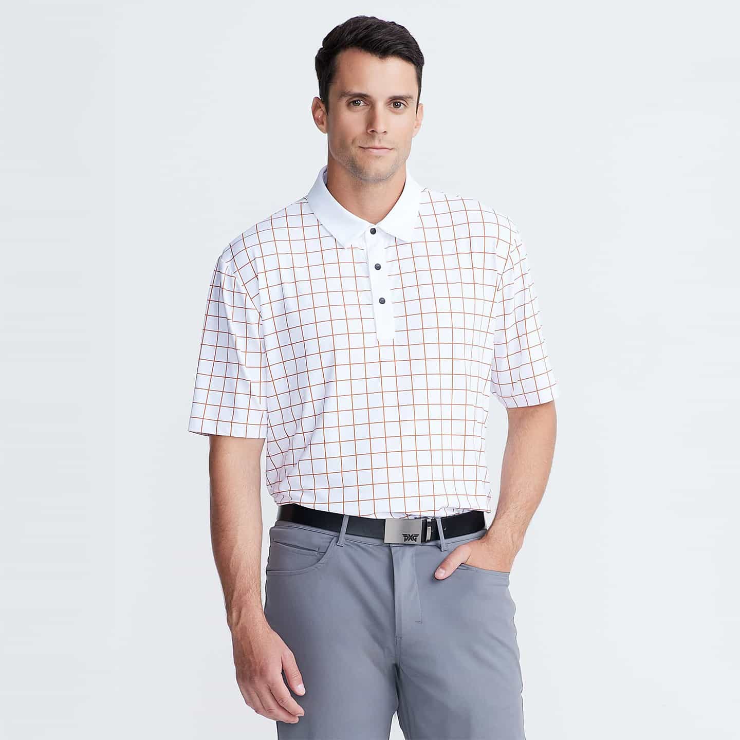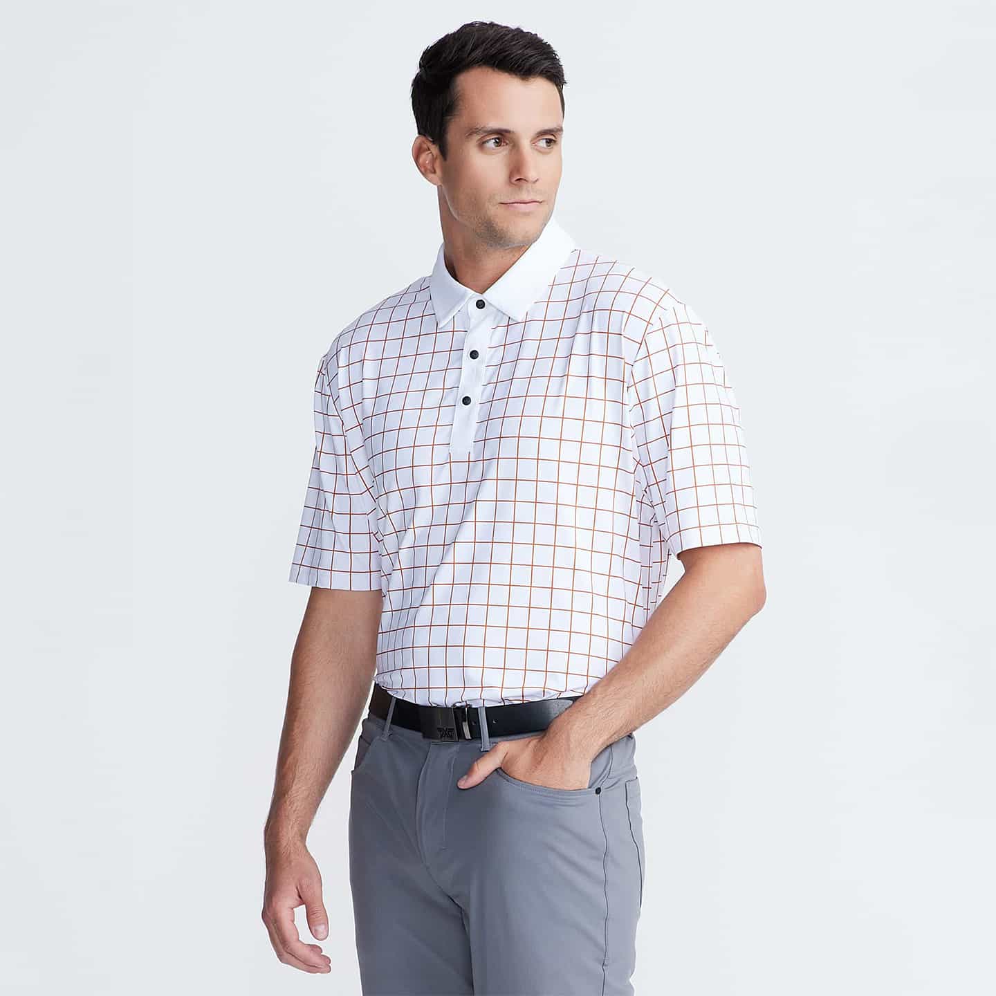 See full detailsLook sharp on every hole in our Men’s Comfort Fit Archive Windowpane Polo. A modern take on a classic pattern, this relaxed-fit polo features our windowpane print in the seasonal Rust color with a white contrast collar. Rendered in a moisture-wicking, quick-dry material that offers UV protection for all-day comfort on or off the green.